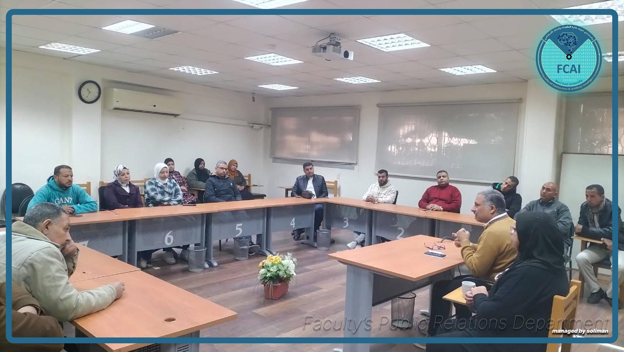 اجتمع مدير الكلية بالعاملين بالكلية22 Dec 2025اجتمع مدير الكلية بالعاملين بالكلية، وذلك في إطار الاستعداد لانطلاق امتحانات الفصل الدراسي الأول للعام الجامعي ٢٠٢٥ / ٢٠٢٦، حيث أكد على ضرورة الالتزام بالتعليمات المنظمة لأعمال الامتحانات، والانتهاء من جميع التجهيزات الإدارية والفنية، بما يضمن حسن سير الامتحانات وانتظامها.