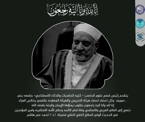 واجب عزاء لوفاة فضيلة الامام الدكتور / احمد عمر هاشم
